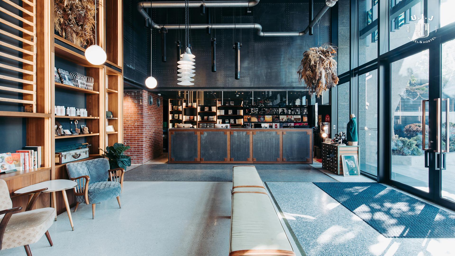 우드 톤의 따뜻함과 다크 그린의 세련된 인테리어가 어우러져 투숙객이 아니더라도 한 번쯤 들러보고 싶게 만들더군요.